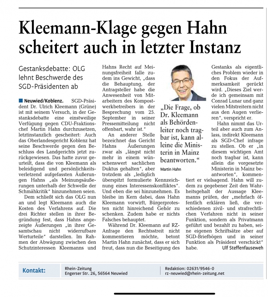 Dr. Rossbach hat für die Neuwieder Lokalpolitik einen wichtigen Erfolg gegen den Präsidenten der SGD Nord erstritten